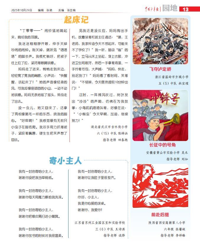 妈妈走了进来,悄悄走到床边,轻轻晃了晃我的肩膀,小声说:“快醒醒,该起床了!”她的声音像轻柔的风,可我却像座顽固的小山,一动不动地装睡。妈妈无奈地摇了摇头,转身走了出去。
