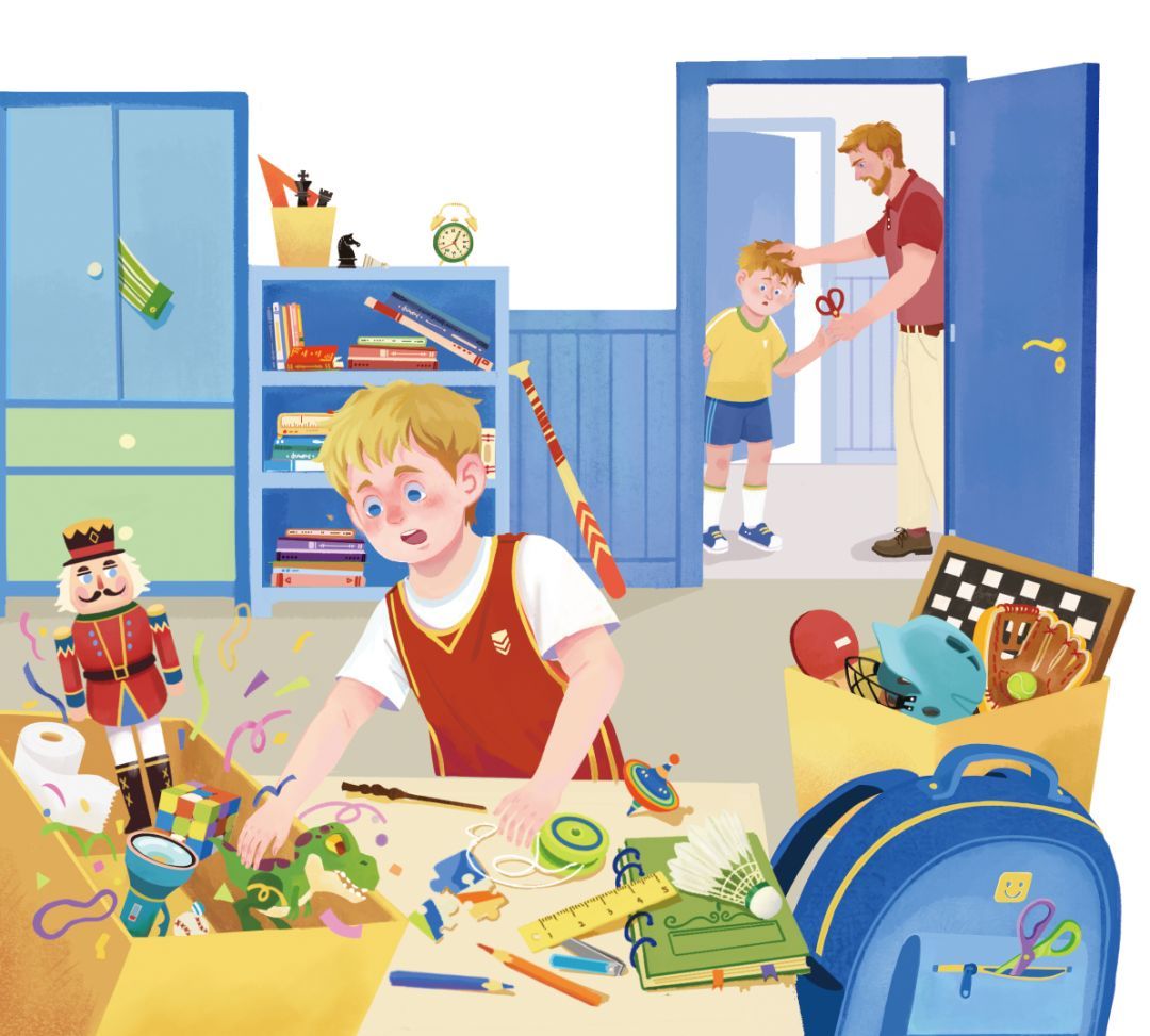 几分钟后,我烦躁起来。需要整理的东西太多了!大到四季穿的衣服、鞋子、帽子,小到书籍、铅笔、指甲刀等各种生活用品,可能需要2小时……哦,不,也许3小时,甚至更多的时间才能完成。我很想赢得这次比赛。我想要比哥哥更快地整理好房间。