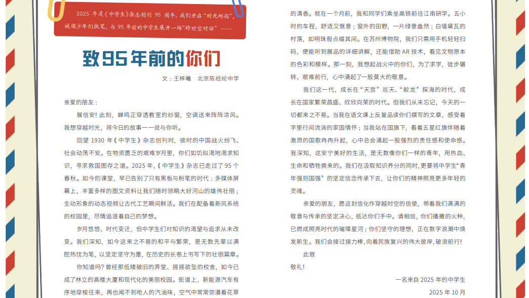 《中学生》杂志95岁啦!速速围观两位作者的深情祝福吧