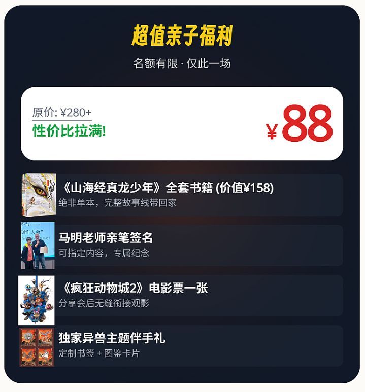 活动特邀《山海经真龙少年》作者马明老师,现场拆解“爆款”故事的创作逻辑:从角色塑造、线索设计到主题表达,从《疯狂动物城2》的创作技巧到《山海经真龙少年》的东方奇幻改编,用孩子能听懂的语言,揭秘一个好故事是怎么“长”出来的。