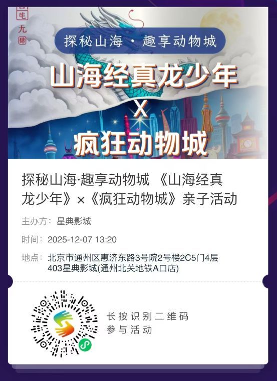 想更深入了解《疯狂动物城2》等大片背后的创作密码吗?想解锁《山海经真龙少年》的异兽设定、剧情构思的独家心法吗?12 月 7 日,这场 “探秘山海・趣享动物城” 主题活动,绝对不能错过!