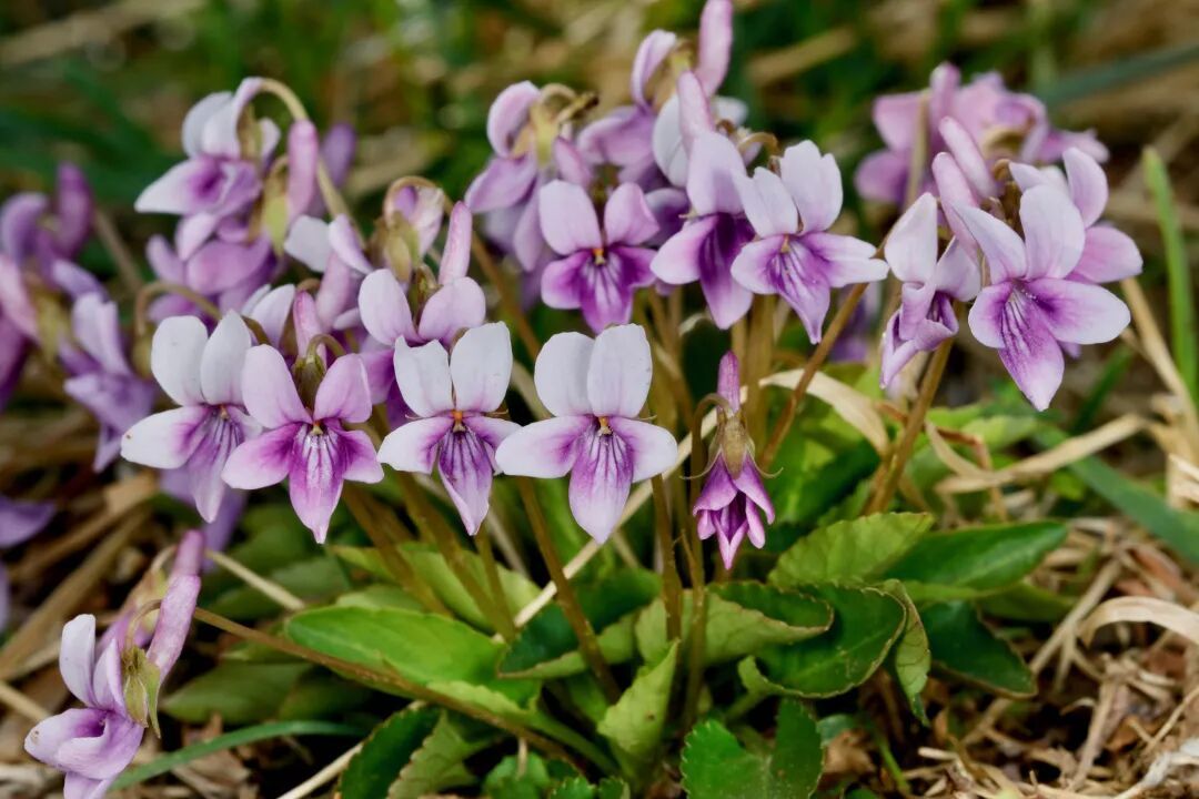 有些植物的花朵上具有不同的颜色,不同的颜色有时可以组合成一定的彩色斑纹,如报春花颜色稍淡一些的花心,萱草中心的“V”形斑,以及三色堇不规则但稳定的花纹;有些植物花朵上的颜色是不固定的,同一植株上不同花朵间都不一样,如洒红桃;有些植物花朵上的纹路特别有规律,一条一条的好似道路,这其实是“蜜导”,主要负责将昆虫引导到藏有花蜜的地方,如一些常见的堇菜。