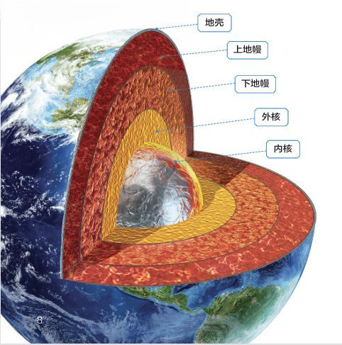 是不是有点儿难懂?别急,我们先来简单了解一下地球的结构:地球就像一颗鸡蛋,分成3层。从外到内分别是地壳、地幔和地核。地核还可以再分成外核和内核:外核主要是高温熔融状态的铁、镍等金属,像一锅热乎乎的“金属汤”,而且它能导电;内核因为压力极大,是固态的。关键来了——地球一直在自转。地球一转,外核那层“金属汤”也会跟着流动。因为这些液态金属能导电,它们的运动就会产生电流。这时候,就该用到科学家麦克斯韦的电磁理论了——有电流,就会产生磁场。所以外核里的电流,就自然而然地产生了地球的磁场,这就是地磁场的来源啦!