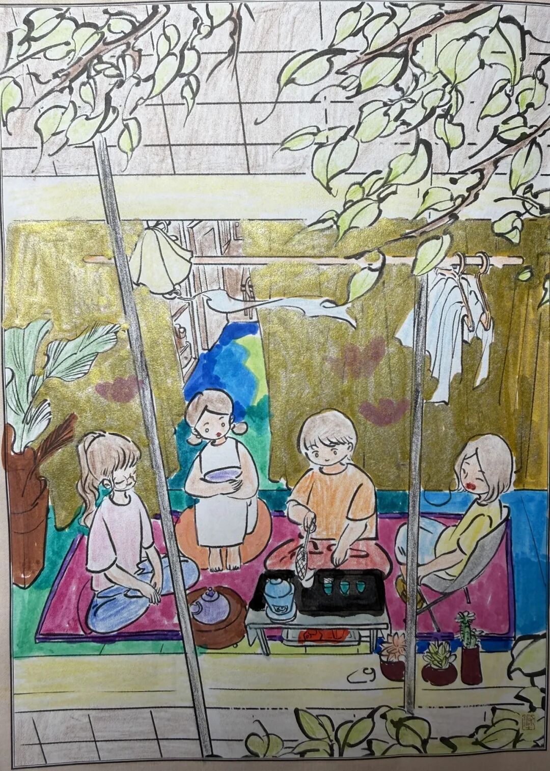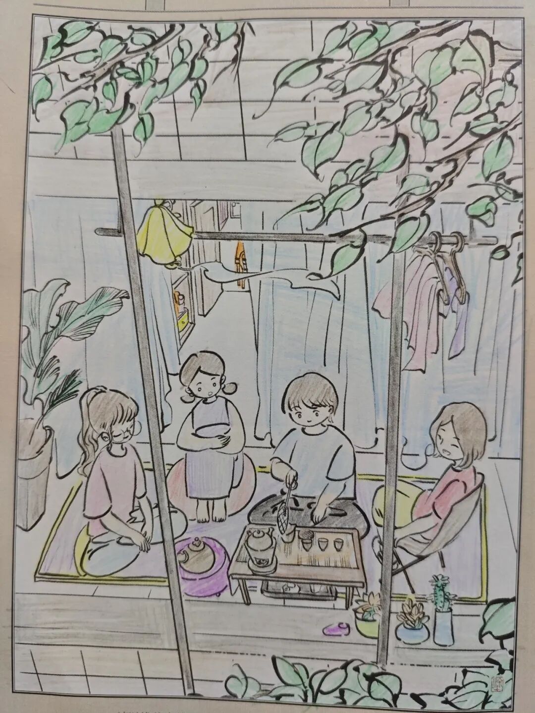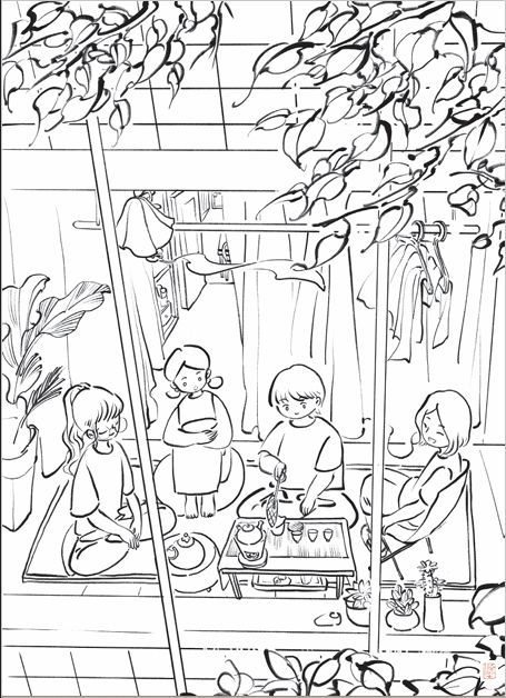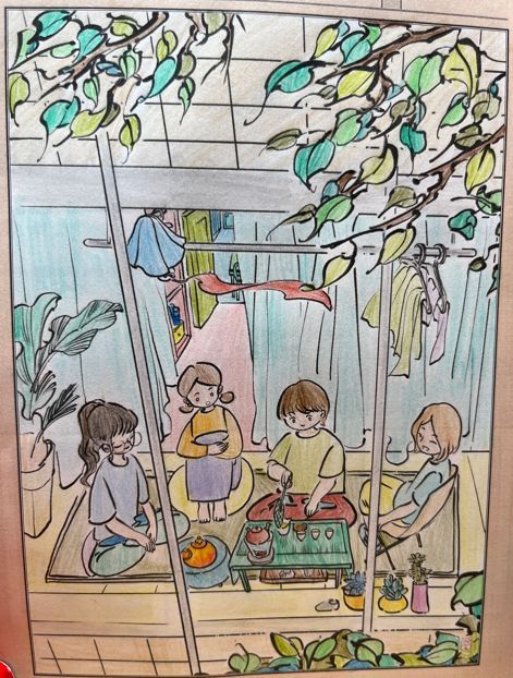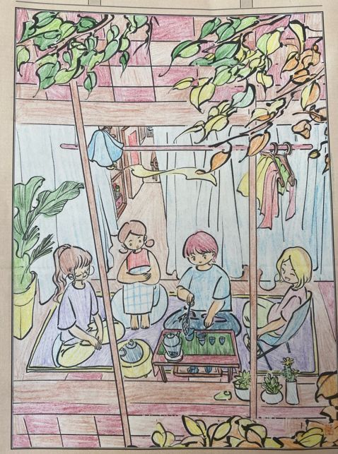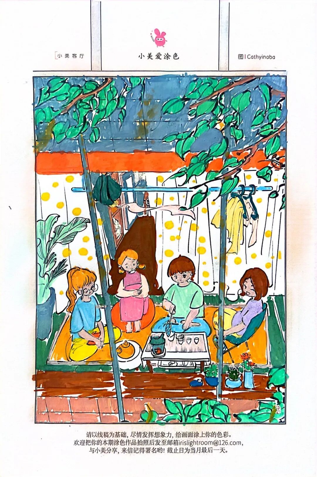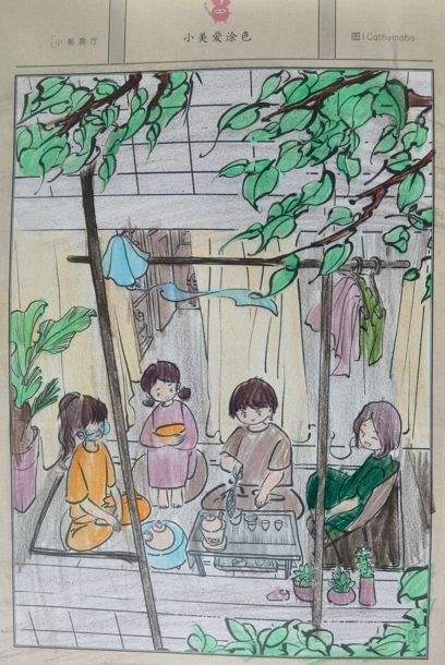 “小美爱涂色”栏目,邀请小画家们以线稿为基础,填补背景,并为画面涂色。