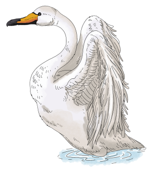 天鹅种类很多,除了刚才说到的大天鹅,还有小天鹅、疣(yóu)鼻天鹅、黑天鹅、黑嘴天鹅、黑颈天鹅……在中国,野生天鹅只有3种,分别是小天鹅、大天鹅和疣鼻天鹅。