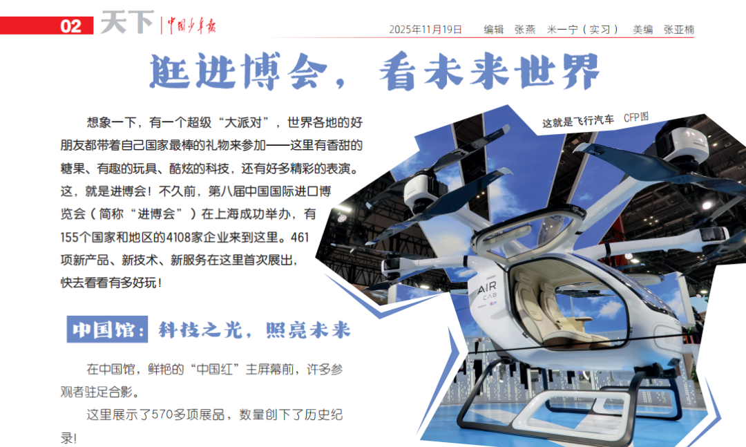 想象一下,有一个超级“大派对”,世界各地的好朋友都带着自己国家最棒的礼物来参加——这就是中国国际进口博览会(简称“进博会”)!不久前,“进博会”在上海成功举办,有155个国家和地区的4108家企业来到这里。461项新产品、新技术、新服务在这里首次展出,快去看看有多好玩!