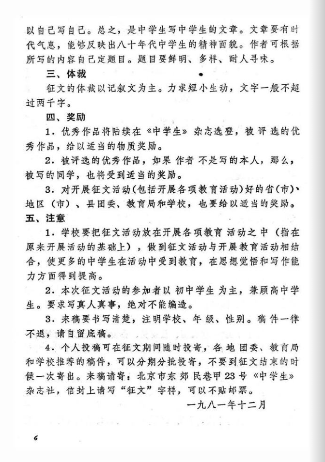 那一年,《中学生》编辑部举办“八十年代的中学生”征文比赛,我的创作获得了三等奖,老师通知我去学校领奖。