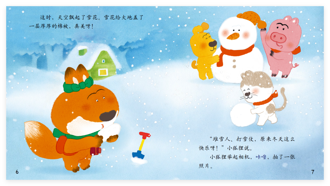 “堆雪人、打雪仗,原来冬天这么快乐呀!”小狐狸说。
