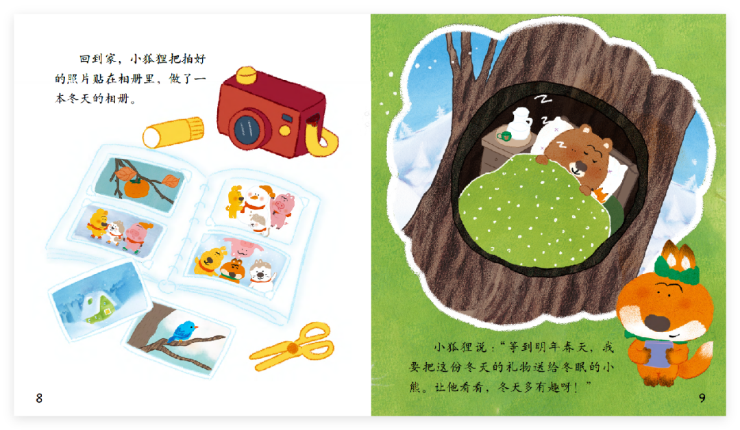小狐狸说:“等到明年春天,我要把这份冬天的礼物送给冬眠的小熊。让他看看,冬天多有趣呀!”