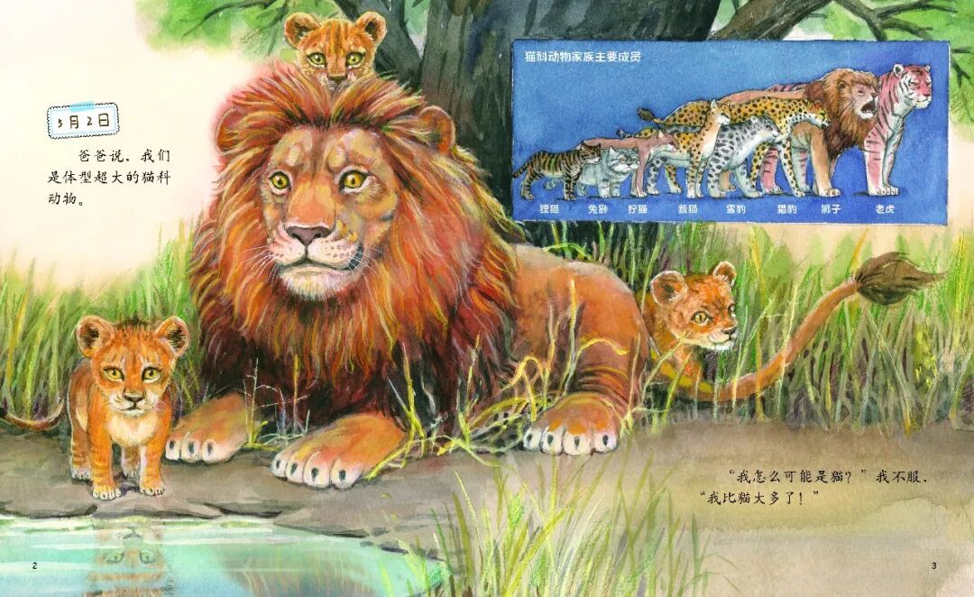 《小狮子的日记》属“我的日记系列”图画书中的一本。《小狮子的日记》以日记的形式,通过小狮子讲述,展现了狮子的各种特征和技能,如狮子的捕猎技巧、狮群的分工合作、狮子的外貌等。将复杂的知识点通过趣味的方式传达给孩子,以拟人化的视角介绍了狮子的生活习性和小狮子梦想成为草原之王故事,充满幽默和童趣。让孩子们在快乐地阅读中,认识了一个有趣可爱,有梦想有自信的朋友,并了解狮子和其他猫科动物、非洲草原生态等相关的科普知识等。故事有趣、有料,轻松、快乐。