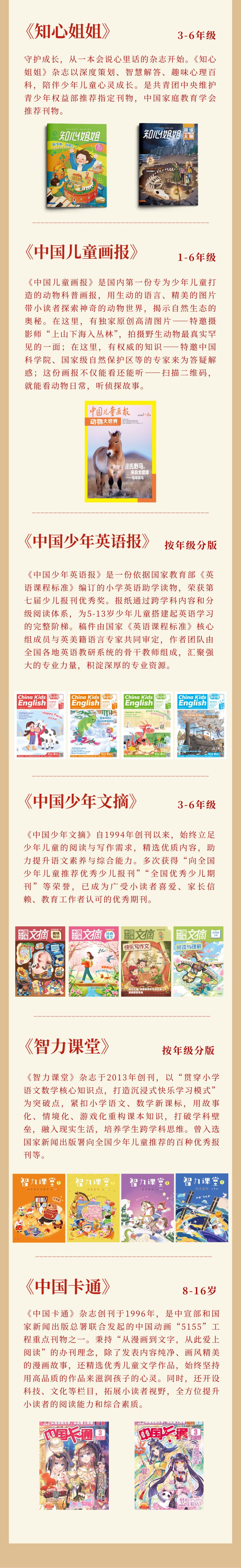 更重要的,报刊不仅是孩子们的良师益友,更是一位默默陪伴的成长伙伴:它能开拓视野,带孩子看见更广阔的世界;启发独立思考,引导孩子关注现实、学会思辨;提升写作能力,让孩子从丰富文本的阅读中学习表达;还能通过暖心故事和互动栏目,提供情感陪伴,帮助孩子在阅读中获得温暖与成长。