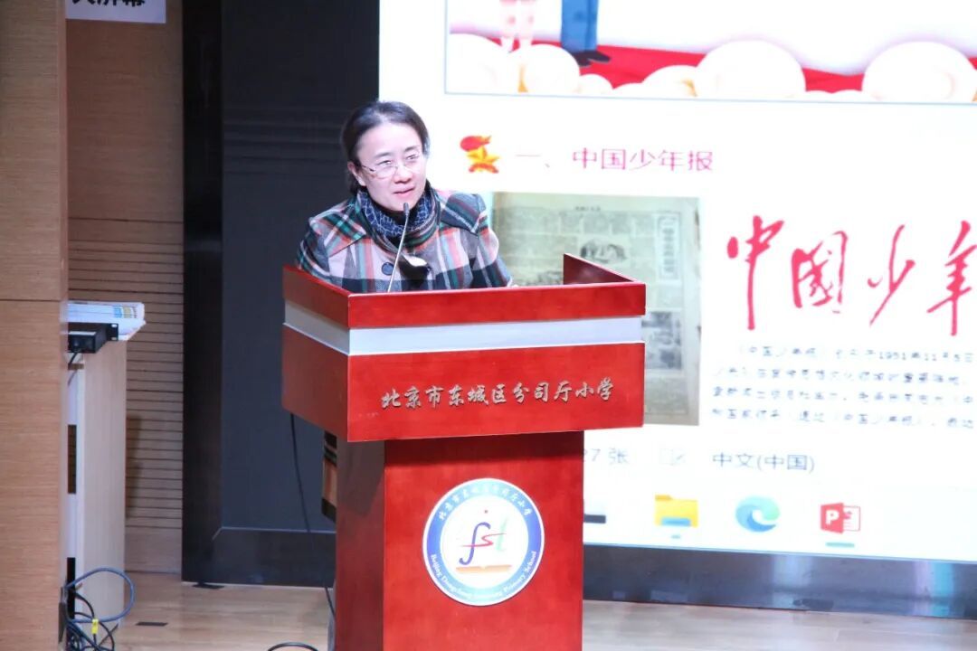 主讲人、《中国少年报》资深编辑张艳从《中国少年报》的创办历程、少先队的发展历史等方面,为现场的少先队员们带来了一堂生动的队史知识课:从革命战争年代的 “劳动童子团”“共产儿童团”,到新时代的少先队组织,用一个个鲜活的故事,让少先队员们深刻感受到少先队组织的光荣传统与使命担当。
